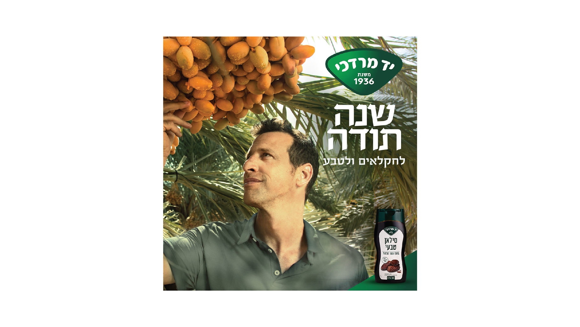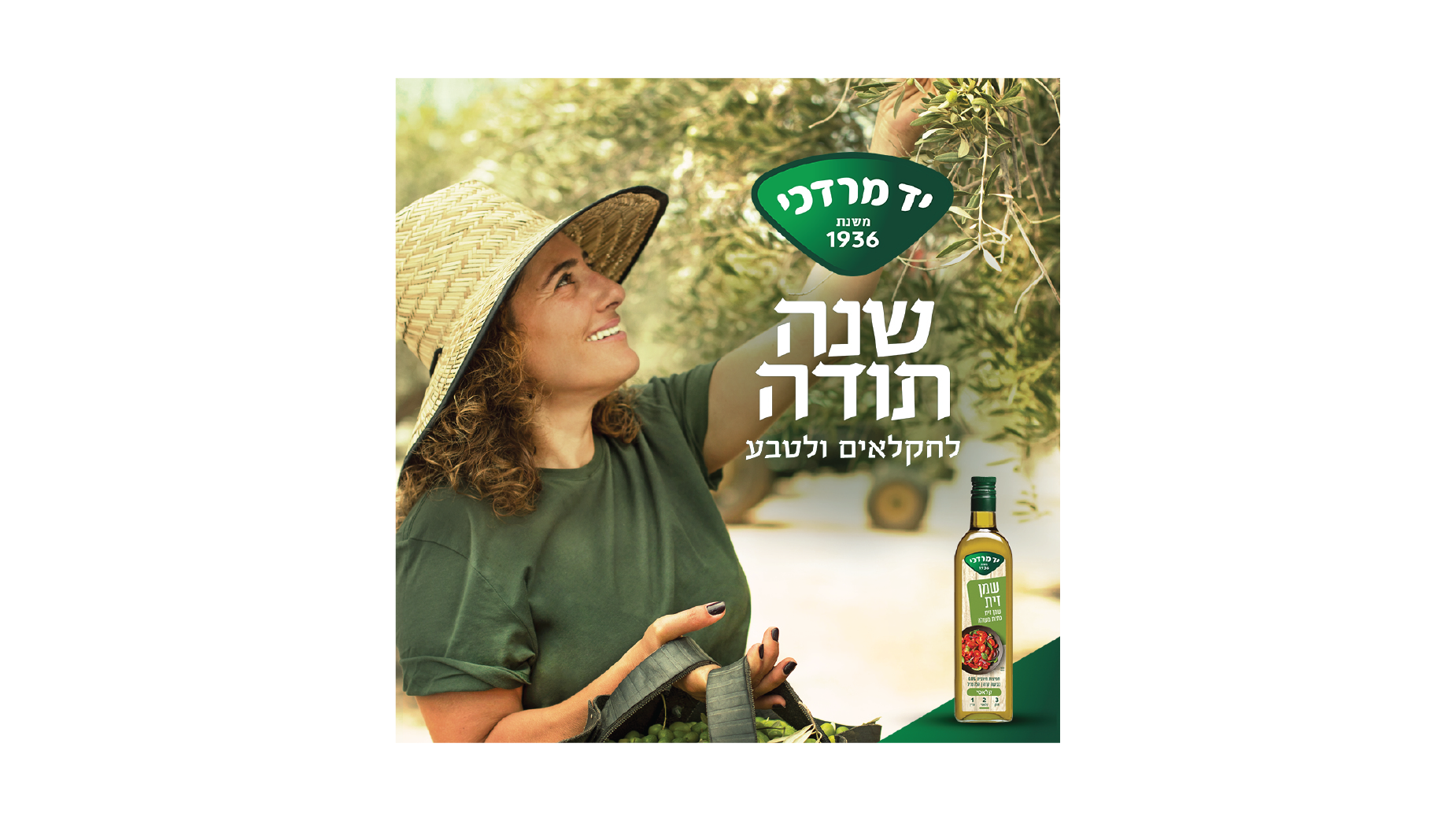 The unique campaign, which was comprised of a television commercial, banners, billboards and social media advertising was led by real farmers – rather than actors actors, who were filmed during their work. The campaign emphasised the people behind the products, presenting the farmers in the orchards, olive groves, pepper allotments and honey hives, producing the raw materials and juxtaposed with the final products. The television commercial and a huge billboard on the Ayalon road – Tel Aviv's main thoroughfare and a strong online and social media presence, together with the pun "Shana Todah" which translates to "a Year of Thanks" Yad Mordechai was recognized for a year of thanks to both to nature - and to its farmers.